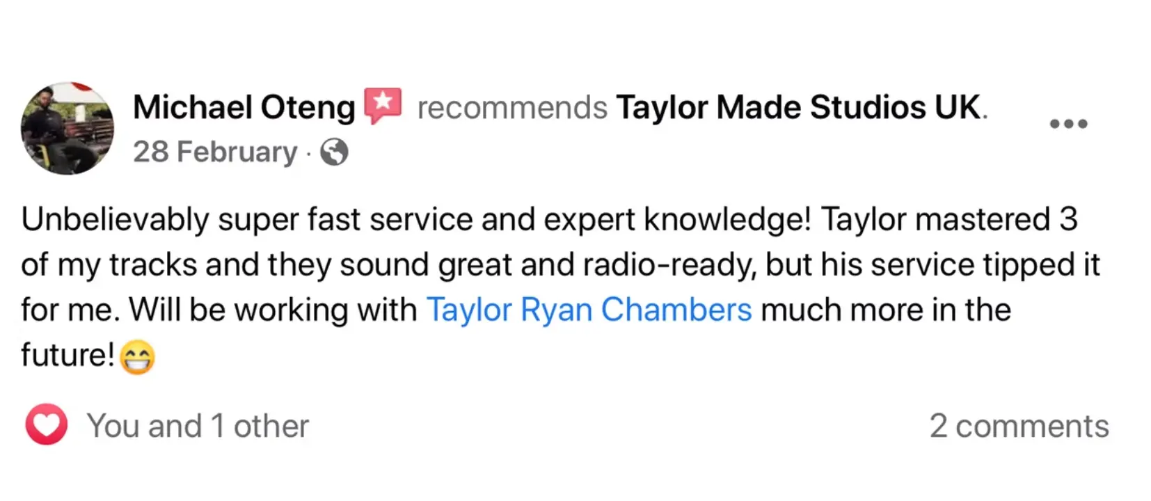 Taylor Made Studios UK was founded by audio engineer, Taylor Chambers. Since 2016, we've been dedicated to delivering high-quality mixing and mastering services, with a focus on sonic excellence.